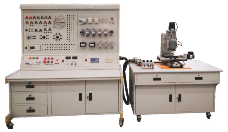 1.X62W銑床實(shí)訓(xùn)考核裝置有1臺(tái)鋼制結(jié)構(gòu)的臺(tái)架和一臺(tái)機(jī)床半實(shí)物(床身采用鋁合金,貼近真實(shí)機(jī)床)及電源裝置組成。