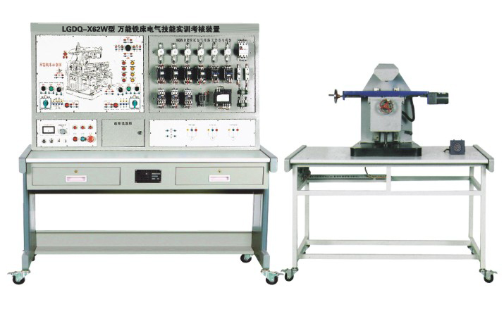 TYK-X62W 型 萬能銑床電氣技能實(shí)訓(xùn)考核裝置 ( 半實(shí)物 )由電源控制部分、機(jī)床電氣控制部分、半仿真機(jī)床實(shí)物部分構(gòu)成。電源控制部分包括實(shí)訓(xùn)定時(shí)、定時(shí)報(bào)警、安全用電自動控制等,機(jī)床電氣控制部分把整臺機(jī)床內(nèi)部電器裝在正面面板上,能直觀地觀察機(jī)床工作時(shí)各電器的動作狀況。故障點(diǎn)在面板上設(shè)有相應(yīng)測試點(diǎn),供實(shí)訓(xùn)考核者測試用。仿真機(jī)床部分能模擬機(jī)床各種運(yùn)動。通過萬能銑床電氣技能實(shí)訓(xùn)考核裝置 的實(shí)訓(xùn)能使學(xué)員掌握機(jī)床常見故障的現(xiàn)象、故障產(chǎn)生的大概部位,熟練掌握機(jī)床電路工作原理,其是維修電工初、中、高級技能鑒定的理想實(shí)訓(xùn)設(shè)備。