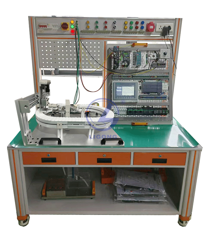 機電一體化實訓工作站主體工作臺分為實訓電源區(qū)、控制對象實訓區(qū)、控制掛板實訓區(qū)、工具耗材存放區(qū)三個區(qū)域,控制對象實訓區(qū)可以放置任意機電類的模塊化應(yīng)用模塊作為控制對象設(shè)備,控制掛板區(qū)可以放置模塊化的PLC控制掛板,用戶根據(jù)專業(yè)課程和實訓需求配置外圍設(shè)備,滿足用戶學校不同層次,不同專業(yè)的教學及培訓要求。