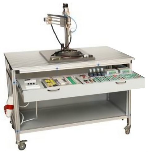 該實(shí)訓(xùn)裝置為坐標(biāo)式機(jī)械手,可完成機(jī)械手旋轉(zhuǎn)、手臂垂直上下、手臂水平移動,手爪旋轉(zhuǎn)四個自由度的位置精確控制。同時配置晶體管式PLC可編程控制器,用于對整個機(jī)械手進(jìn)行復(fù)雜地位置控制。該實(shí)訓(xùn)裝置的控制部分均采用標(biāo)準(zhǔn)式模塊設(shè)計,可分為電源模塊、PLC模塊、系統(tǒng)控制模塊。包含了機(jī)電一體化專業(yè)中所涉及的諸如步進(jìn)電機(jī)驅(qū)動、機(jī)械傳動、氣動、可編程控制器、傳感器、等多項(xiàng)技術(shù),給學(xué)生提供了一個綜合實(shí)訓(xùn)環(huán)境,使學(xué)生學(xué)過的諸多單科專業(yè)知識在這里得到全面認(rèn)識、綜合訓(xùn)練和相互提升。該實(shí)訓(xùn)裝置主要用于電氣、電工電子、自動化控制、機(jī)電一體化專業(yè)崗位技能實(shí)訓(xùn)、考核,是各院校相關(guān)專業(yè)實(shí)訓(xùn)室建設(shè)中最佳設(shè)備選擇之一。