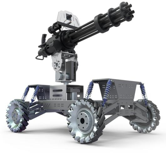 1.?AI偵查機(jī)器人底盤采用全鋁結(jié)構(gòu),內(nèi)置麥克納姆輪四驅(qū)系統(tǒng),可適應(yīng)多種戶外場景,同時還可與鋁合金結(jié)構(gòu)梁結(jié)合進(jìn)行各個部件的承載與擴(kuò)展。