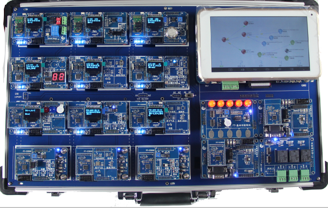 TYK-PV6B型 無線傳感網(wǎng)全功能實驗箱集成WiFi、Bluetooth、IEEE802.15.4、ZigBee等多種短距離無線通訊模塊,*大亮點是將6LowPAN(IPv6)互聯(lián)網(wǎng)協(xié)議移植到傳感網(wǎng)應(yīng)用層中,與ZigBee傳感網(wǎng)使用的ZStack協(xié)議棧并存,共同支持雙協(xié)議棧,實現(xiàn)傳感器節(jié)點可唯一尋址。采用三星Cortex-A9 S5P4418四核處理器作為智能網(wǎng)關(guān),支持6LowPAN和ZStack雙協(xié)議解析,具有1GB內(nèi)存、8GB大容量存儲空間、7寸電容觸摸顯示屏、豐富的外圍接口,可板載GPS定位、WIFI/BT二合一通訊、4G移動通訊等多種模塊,內(nèi)嵌Android、Linux雙系統(tǒng),可一鍵切換。方便學校開展各種傳感器及通訊知識的教授、嵌入式系統(tǒng)開發(fā)和Android應(yīng)用開發(fā)。系統(tǒng)提供豐富的實驗例程和實驗手冊,能夠滿足無線傳感器網(wǎng)絡(luò)、微控制器原理、嵌入式系統(tǒng)開發(fā)、Android移動應(yīng)用開發(fā)等課程的教學與實踐。