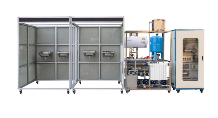 一、概述 給排水對象模型整體采用鋁型材框架和網(wǎng)孔板進(jìn)行設(shè)計,主要給排水管道設(shè)備安裝在鋼架底座上、具備開放式的特點(diǎn),由生活給水系統(tǒng)、消防給水系統(tǒng)、熱水給水系統(tǒng)、排水系統(tǒng)、污水處理系統(tǒng)和控制系統(tǒng)六個部分組成。 二、主要技術(shù)指標(biāo) ? ?1.工作電源:三相四線制AC380V±10% 50Hz; 2.給排水模型外形尺寸:1200×800×1750mm?(長×寬×高); 給排水模擬房間外形尺寸:3000×800×1900mm?(長×寬×高); 給排水控制柜外形尺寸:800×600×1700mm?(長×寬×高) 3.給排水模型材料:不銹鋼; 4.整機(jī)功耗:<4.5KVA; 5.裝置底部安裝有帶剎車腳輪,方便裝置的移動和固定; 6.安全保護(hù)措施:具有接地保護(hù)、漏電過載保護(hù)、誤操作保護(hù)功能;安全性符合相關(guān)的國標(biāo)標(biāo)準(zhǔn),所有材質(zhì)均符合環(huán)保標(biāo)準(zhǔn)。...