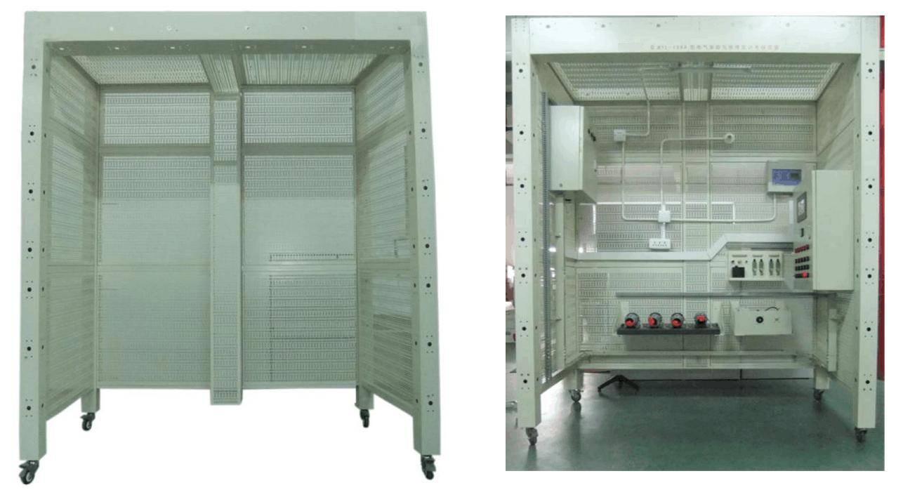 ? ? ?裝置可進行電工安裝,如橋架安裝,PVC管安裝,吊燈,白熾燈座,日光燈,開關(guān),插座,控制箱,配電箱等,包含有交流異步電動機,直流電動機,步進電機,伺服電機,溫度控制器,電偶,PLC,變頻器觸摸屏等控制與受控對象。每個操作組配套一個移動式工具車和元件柜,便于對原件的保管和安裝施工,從根本上解決了學(xué)校在普通墻面上進行安裝培訓(xùn)的使用不方便,實訓(xùn)范圍窄的問題。