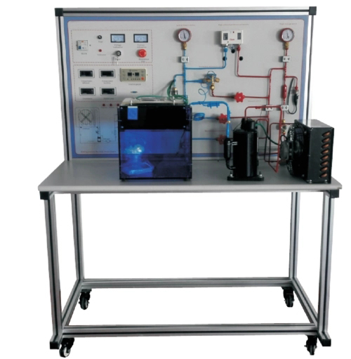4.面板可觀察到整個(gè)制冷系統(tǒng)結(jié)構(gòu)原理以及主要部件的實(shí)際物體,相應(yīng)部件均有名稱標(biāo)識(shí);并設(shè)有視液鏡,可觀察制冷劑狀態(tài)