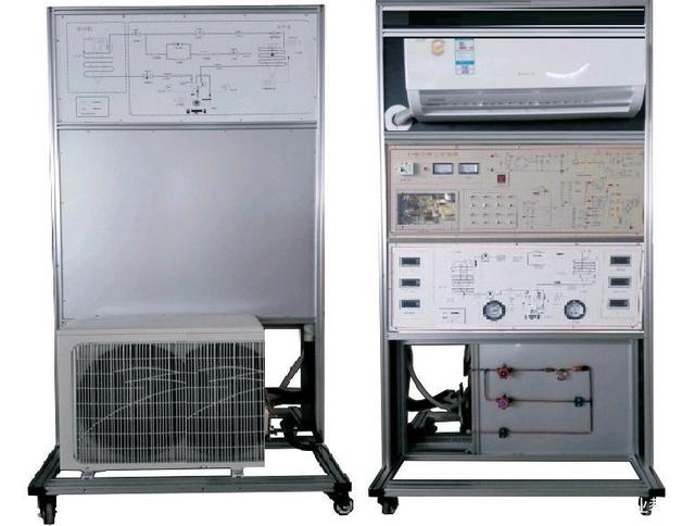 2.、裝置直觀展示了空調(diào)的系統(tǒng)結(jié)構(gòu)和工作原理,便于教學(xué)演示講解及學(xué)生對課本知識的理解掌握。配置的交流電壓表、交流電流表、溫度表、真空壓力表以及相應(yīng)的信號指示燈,使整個變頻空調(diào)系統(tǒng)的實時工作狀態(tài)一目了然;主面板中間印有電氣控制系統(tǒng)原理圖,并設(shè)有相應(yīng)測試點;,屏背面可觀察到整個制冷系統(tǒng)結(jié)構(gòu)原理以及主要部件的實際物體,相應(yīng)部件均有名稱標(biāo)識;并設(shè)有視液鏡,可觀察制冷劑狀態(tài)