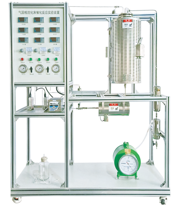 流化床反應(yīng)器、加熱爐、預(yù)熱器、蠕動泵、質(zhì)量流量計、濕式氣體流量計、壓力表、溫度傳感器、中央處理器、觸摸屏、高品質(zhì)鋁合金型材框架。