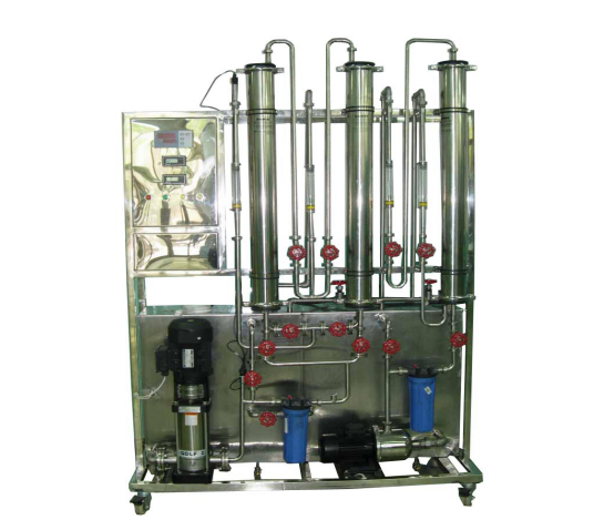 一、裝置特點(diǎn) 1.加壓動(dòng)力組件采用不銹鋼多級(jí)高壓離心泵,具有高壓力、高效率、耐腐蝕、自吸能力強(qiáng)等優(yōu)點(diǎn),壓力、流量可自由調(diào)節(jié)。 2.整體結(jié)構(gòu)緊湊,操作簡(jiǎn)單,運(yùn)行體積小,主機(jī)采用不銹鋼材料制作。 3.系統(tǒng)進(jìn)料及回流管路采用耐壓編織軟管,軟連接管路采用硅膠軟管,連接便捷;主機(jī)采用304不銹鋼管路及配件,承壓高、耐腐蝕、且密封性好。 二、裝置功能 1.通過實(shí)驗(yàn)掌握超濾膜分離、反滲透膜分離原理和工藝過程和操作方法。 2.可根據(jù)進(jìn)水、濃水和凈水的流量及含鹽量,計(jì)算回收率、脫鹽率;研究影響反滲透膜分離性能的主要因素及其影響規(guī)律。 三、主要配置 濃水槽、原水槽、淡水槽、高壓泵、離心泵、預(yù)過濾器、反滲透卷式膜組件、納濾膜組件、超濾組件、壓力表、液體流量計(jì)、管路、閥門、不銹鋼控制屏、不銹鋼框架。 四、公用設(shè)施 1.水:裝置自帶水箱,連接自來水。實(shí)驗(yàn)時(shí)由水箱循環(huán)泵送入系統(tǒng),循環(huán)使用。 2.電:電壓AC380V,功率1.5KW,標(biāo)準(zhǔn)三相四線制。每個(gè)實(shí)驗(yàn)室需配置1~2個(gè)接地點(diǎn)(安全地及信號(hào)地)。 3.實(shí)驗(yàn)物料:自來水或聚乙二醇,外配設(shè)備:分光光度計(jì) 五...