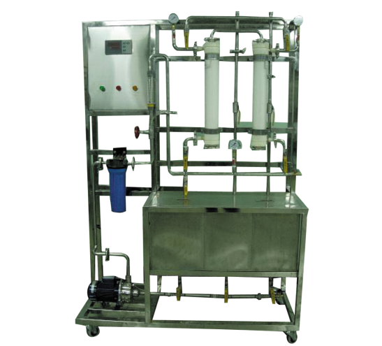 一、裝置功能 1.膜分離效率測定;了解膜分離的分離工藝流程。 2.通過折分膜組件,進一步理解膜組件的內部結構。 3.測定鹽(溶質)的脫除率與操作壓力的變化關系 二、主要配置 洗水池、濾液池、水泵、超濾組件、壓力表、液體流量計、控制屏、不銹鋼框架。 三、公用設施 1.水:裝置自帶水箱,連接自來水。實驗時由水箱循環(huán)泵送入系統(tǒng),循環(huán)使用。 2.電:電壓AC220V,功率1KW,標準單相三線制。每個實驗室需配置1~2個接地點(安全地及信號地)。 3.實驗物料:自來水或聚乙二醇,外配設備:分光光度計 四、技術參數 1.運行環(huán)境:溫度0-40℃,相對濕度:≤90%RH,電源:電壓220V;功率370W。 2.超濾膜組件:聚丙烯中孔纖維,孔徑:0.01—0.3μm,孔隙率:50%-55%,截留分子量:5萬,可實現(xiàn) 無菌過濾。使用溫度:44℃-73℃;*大工作壓力:4Kg/cm2。 3.活性炭過濾器:規(guī)格:Φ100×400mm,過濾介質為活性炭。 4.配液池:60L,304不銹鋼制。洗水池:60L,304不銹鋼制。 5.水泵:不銹鋼離心泵,流量:1m3/h,揚程:30m,功率:370W。 6.流量計:液體流量16-160L/h,...
