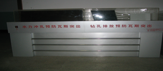 ? ? 該預(yù)防瓦斯突出安全措施模型? (適合于一、二、三級),利用發(fā)光管顯示,采用水力沖孔、煤層注水、瓦斯抽放,開采解放層等方法演示預(yù)防瓦斯突出。