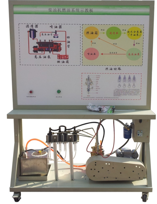 1.燃料供給系示教板采用全新EQ1118G柴油發(fā)動機(jī)燃油噴射系統(tǒng)實物制作,充分展示柴油發(fā)動機(jī)燃油噴射系統(tǒng)的組成結(jié)構(gòu)和工作過程。