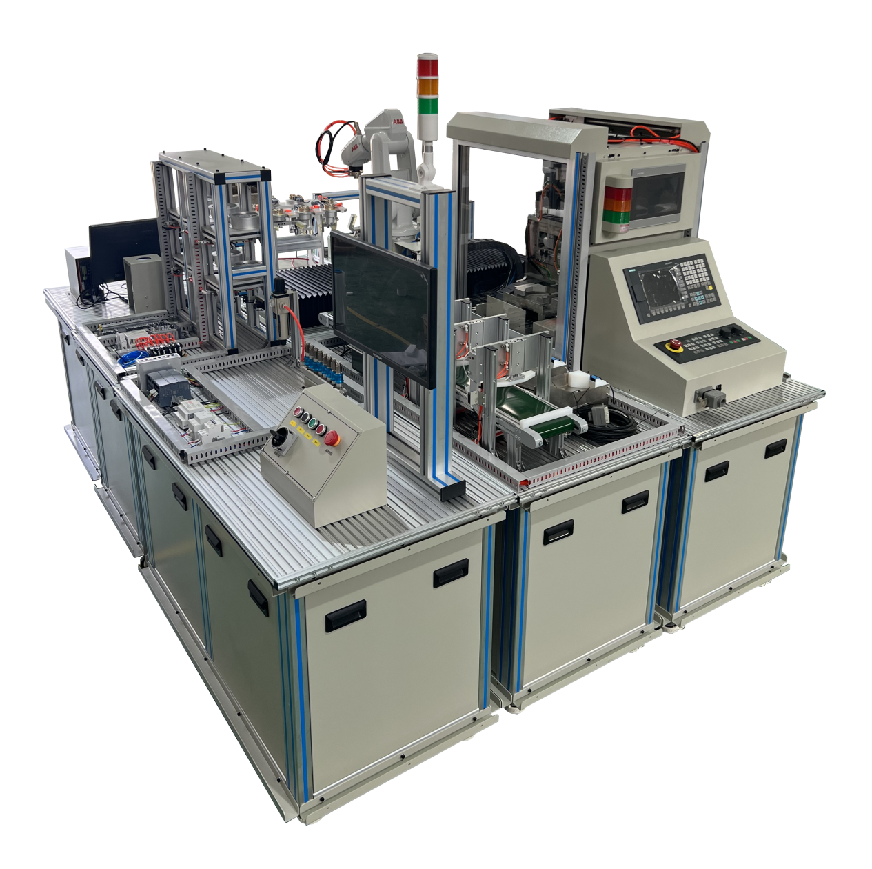 ????LG-ISFTP03型?智能制造單元系統(tǒng)集成應(yīng)用平臺能完成工業(yè)機器人與 PLC 控制的綜合實訓(xùn),采用模塊化組裝,方便教師教學(xué), 可以實現(xiàn)工業(yè)機器人的基本操作,同時實現(xiàn)工業(yè)機器人搬運、碼垛、裝配、涂膠、數(shù)控機床上下料等典型任務(wù),還可以完成視覺檢測,PLC 編程,通信、工控組態(tài)等自動化控制項目;可以完成工作站系統(tǒng)故障診斷及常見故障排除、工作站系統(tǒng)方案設(shè)計等綜合實訓(xùn)項目。