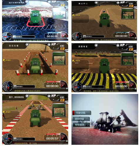 7.基礎訓練模式:可滿足設備基礎規(guī)范操作的要求,可實現(xiàn)各種轉(zhuǎn)向、行走、鏟刀升降、鏟刀傾斜以及施工作業(yè)的逼真模擬。