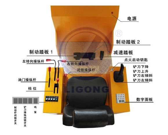 3.擁有左右行走踏板、減速踏板、鏟刀控制手柄、操縱箱、手拉式方向總成、檔位控制器、檔位閉鎖桿、油門拉桿、高集成數(shù)據(jù)電路板及各種功能調(diào)節(jié)組件等組成,操作時在視屏上顯示輸出與操作相對應的逼真三維場景并伴有相應語音提示;