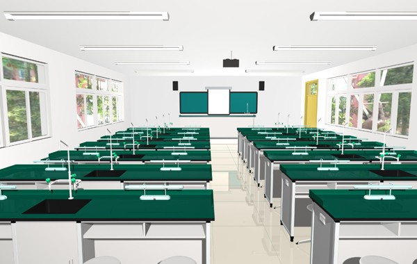 2、電器部分:光源采用30W電子日光燈,兩人一組,教師主控臺分四組電源控制,學生桌配有220V交流電源。