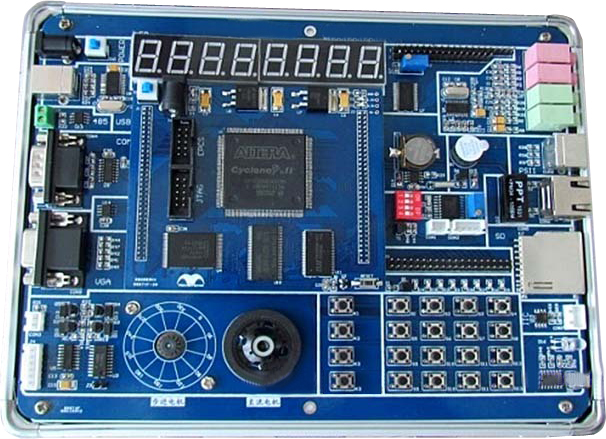 一、硬件資源 1、ALTERA Cyclone II EP2C20Q240C8芯片115萬門。 核心板可以更換其它主芯片的核心板 2、1片64Mb FLASH芯片(32位總線操作,可兼容128Mb或256Mb Flash) 3、1片64Mb SDRAM芯片(可8位、16位、32位數(shù)據(jù)總線操作) 4、1片4Mb SRAM芯片16位總線(可升級為8Mb SRAM芯片) 5、1個10M以太網(wǎng)接口 6、VGA接口 7、SD卡媒體接口 8、1個RS232接口 9、1個USB轉(zhuǎn)232接口 10、1個RS485接口 11、LCD1602液晶屏接口 12、LCD12864液晶屏接口(支持YT-320*240 TFT彩色屏) 13、高性能立體聲音頻編解碼器TLV320AIC23:1路LINE-out、1路HP-out、1路MIC-in、1路LINE-in 14、8個共陰七段數(shù)碼管 15、8個LED指示燈 16、4個功能按鍵(button鍵) 17、4*4矩陣鍵盤 18、4路撥檔開關(guān) 19、1路蜂鳴器 20、1個溫度傳感器 21、紅外收發(fā)器 22、1個直流電機驅(qū)動(PWM) 23、1個四相步進電機驅(qū)動 24、1路PS/2鍵鼠接口 25、SPI EEPROM 93C46 26、IIC EEPROM 24C32 27、IIC總線8位AD...