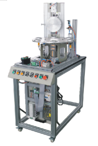 由旋轉(zhuǎn)工作臺(tái)、平面推力軸承、直流減速電機(jī)(10W/24V ?5r/m)、刀具庫(3種刀具)、升降式加工系統(tǒng)、加工組件、檢測組件、光電傳感器、轉(zhuǎn)臺(tái)到位傳感器、步進(jìn)電機(jī)、步進(jìn)電機(jī)驅(qū)動(dòng)器、電氣掛板等組成。主要完成物料加工和深度的檢測。工件在旋轉(zhuǎn)平臺(tái)上被檢測及加工。旋轉(zhuǎn)平臺(tái)由直流電機(jī)驅(qū)動(dòng)。平臺(tái)的定位由繼電器回路完成,通過電感式傳感器檢測平臺(tái)的位置。工件在平臺(tái)并行完成檢測及鉆孔的加工。在進(jìn)行鉆孔加工時(shí),夾緊執(zhí)行件夾緊工件。加工完的工件,通過電氣分支送到下一個(gè)工作站。