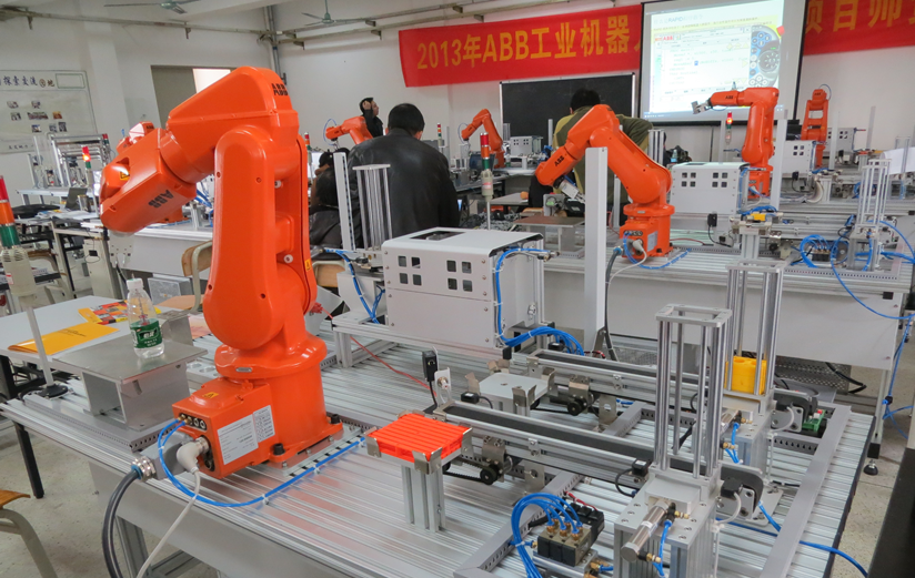 ? ? ? ? 該實訓平臺由ABB IRB120六自由度工業(yè)機器人系統(tǒng)、、可編程控制器(PLC)系統(tǒng)、供料單元、直線輸送單元、壓鑄單元、幾何軌跡控制單元、電氣控制柜、型材實訓桌、型材電腦桌等組成。