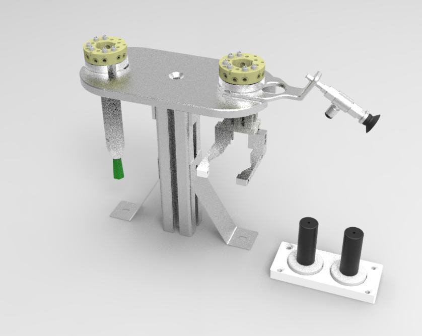 ? ? 機器人末端工具是機器人的執(zhí)行單元,如圖?8 所示此模塊包括尖點輔助工具、筆工具、氣動夾爪工具和氣動吸盤工具。尖點輔助工具形狀為圓錐,具有TCP?校準功能,同時可以模擬去毛刺、涂膠工具。筆工具、夾爪工具和吸盤工具都配備了機械快換工具,與機器人法蘭盤的機械快換工具配套使用,可實現(xiàn)工具的快速更換。筆工具內(nèi)部設置有緩沖裝置,可以有效減少學生初步學習機器人操作時,由于不熟練導致剛性碰撞產(chǎn)生對工具的損壞。筆工具可以完成軌跡、寫字和繪畫等實驗內(nèi)容,彩筆可快速更換。夾爪工具和吸盤工具采用國際知名品牌,?用于物料的抓取和吸附。