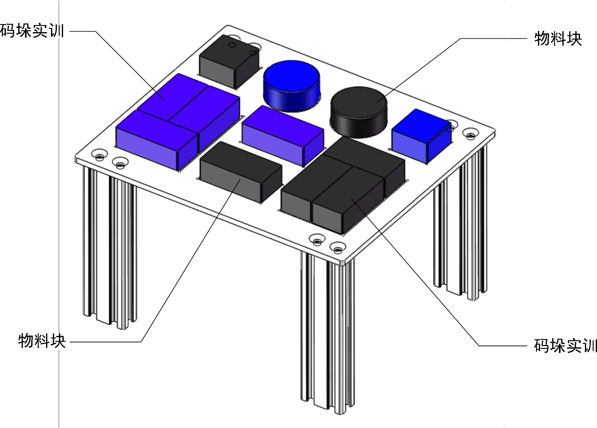 ? ? 搬運碼垛是工業(yè)機器人應用最廣泛的行業(yè)之一,此模塊作為流水線下料的存放臺,臺面上設置有與物料形狀對應的?6?個工位。當傳送裝置末端到位傳感器檢測到有信號時,會出發(fā)機器人將物料塊從傳送帶末端搬運到此臺面對應的工位。同時,此模塊具有兩個獨立的碼垛練習工位,每個工位有三個尺寸相同的長方形碼垛塊,通過這?6?個碼垛塊可以練習數(shù)組和循環(huán)指令的使用。