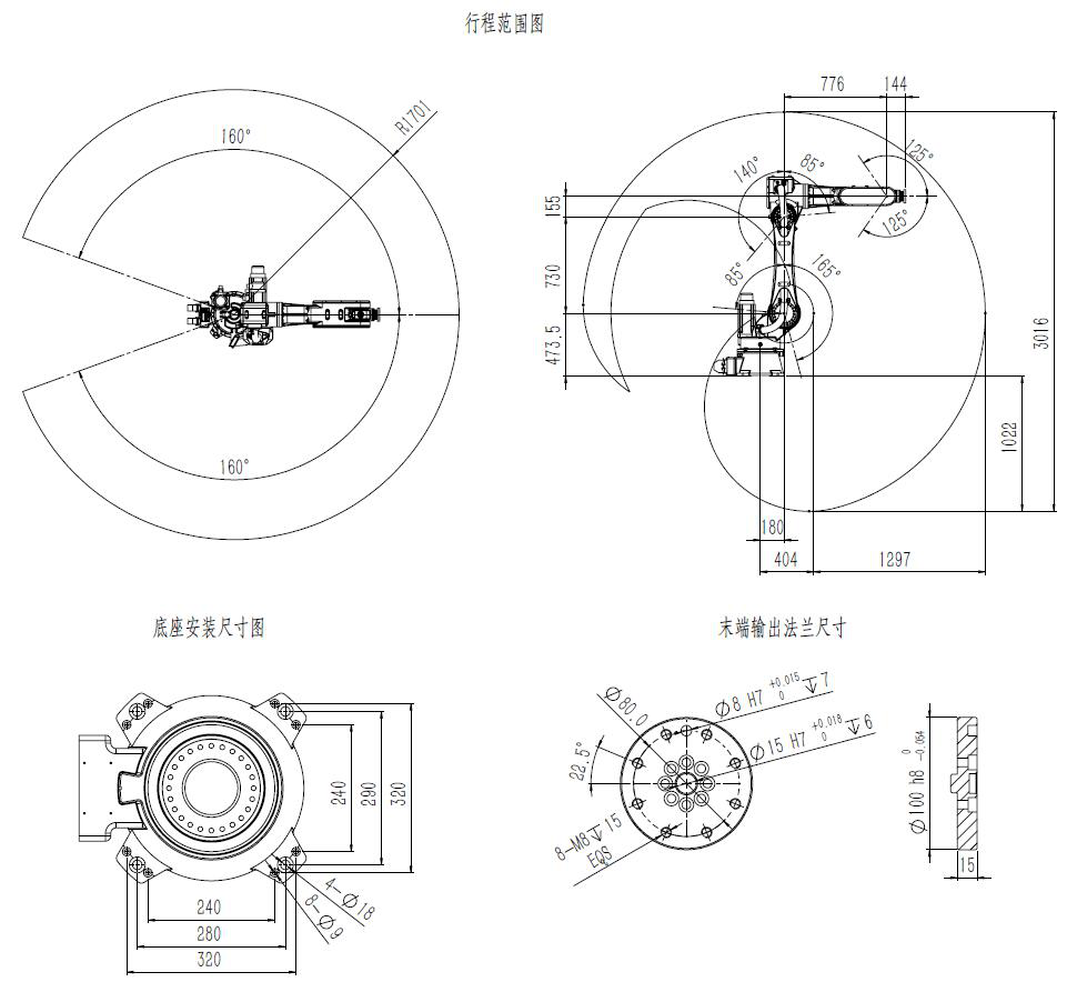5.超高精度: 除了精密的設(shè)計外,采用了進口高精密減速機,末端重復(fù)定位精度高達±0.05MM ;