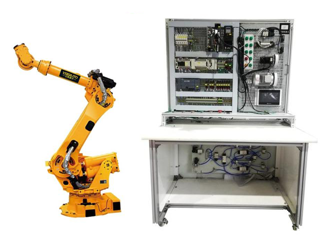 ? ? 本工業(yè)機器人故障診斷實訓系統(tǒng)以工業(yè)機器人與機器人控制系統(tǒng)為核心,將機器人伺服驅(qū)動技術、運動控制、PLC技術、觸摸屏技術有機地進行整合,結(jié)構模塊化,可以對發(fā)生的系統(tǒng)故障進行檢測和維修,以及機器人控制系統(tǒng)常見故障的設計與故障排除,可以進行六軸機器人示教、定位、抓取、裝配等訓練。?