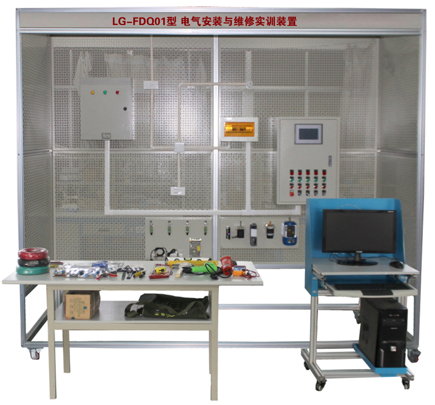 ? ? ? LG-FDQ01A型?電氣安裝與維修實訓(xùn)裝置是根據(jù)工廠電氣安裝和室內(nèi)電氣安裝等維修電工和電氣安裝工實訓(xùn)鑒定要求開發(fā)的一種通用實訓(xùn)平臺。電氣安裝與維修實訓(xùn)裝置適合于各類職業(yè)院校和技工學(xué)校維修電工、電氣安裝工、水電工等有電氣實訓(xùn)要求的相關(guān)專業(yè)的作為公共實訓(xùn)平臺使用。