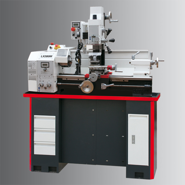 型號 Model TYK280M TYK280 MV 產品編號 Code No. PX4328000 PX4328100 車床 LATHE 床身上*大回轉直徑 Swing over bed ø280mm ø280mm 兩頂尖中心距 Distance between centers 700mm 700mm 主軸孔徑 Spindle bore ø26mm ø26mm 主軸錐度 Spindle taper MT4 MT4 主軸轉速 Spindle speeds 125-2000rpm 50-2200rpm 尾架套筒錐度 Tailstock taper MT2 MT2 公制螺距 Pitch-metric 0.2-3.5mm 0.2-3.5mm 英制螺距 Pitch-inch 8-56TPI 8-56TPI 電機功率 Motor power 850W 1.1KW 鉆銑床 MILL&DRILL *大鉆孔直徑 Max.drilling capacity ø20mm ø20mm *大面銑能力 Face milling capacity(Max.) ø63mm ø63mm *大立銑能力 End milling capacity(Max.) ø20mm ø20mm 主軸手動升降行程 Spindle travel manually 185mm 185mm 主軸錐度 Spindle taper M...