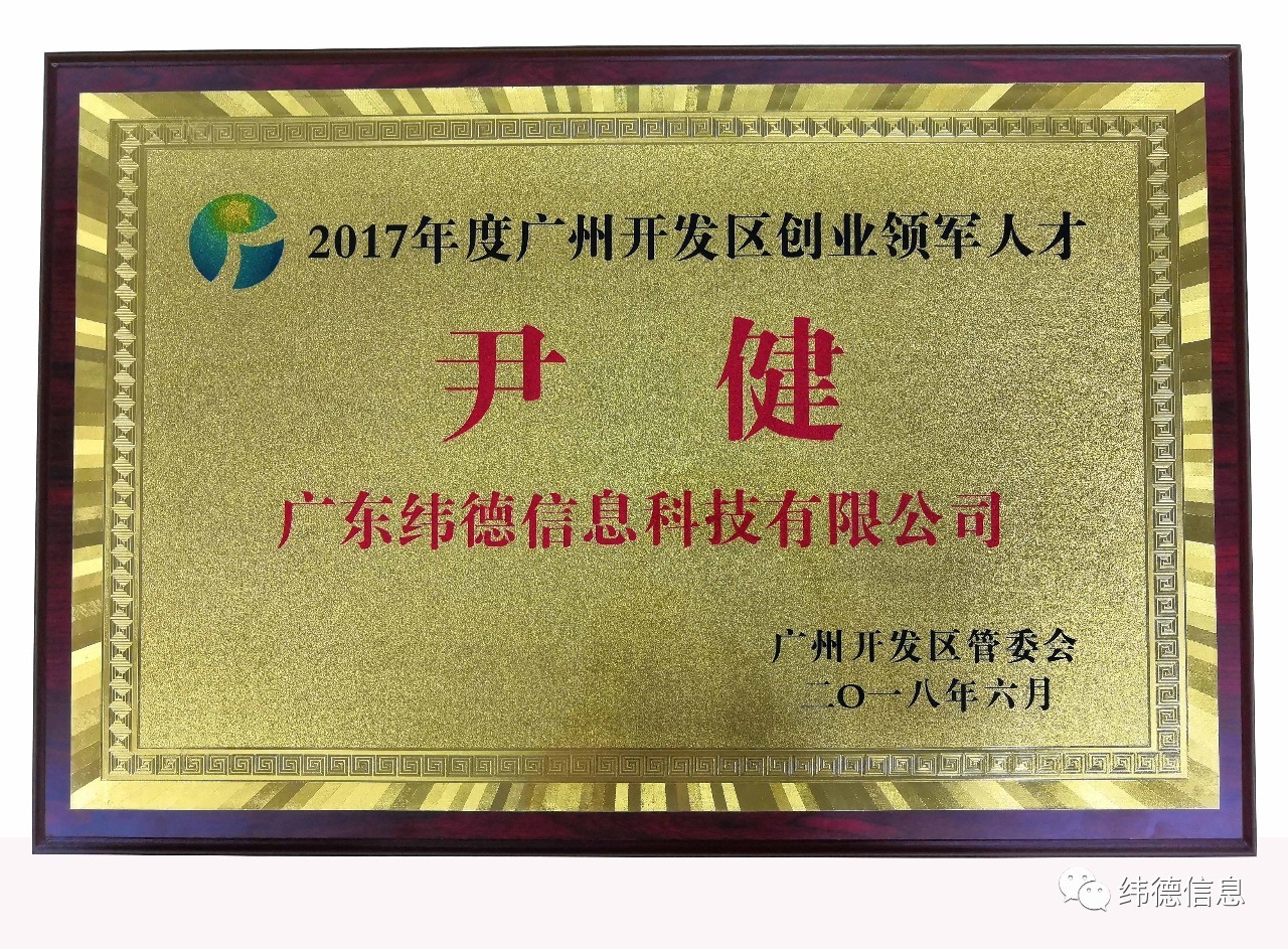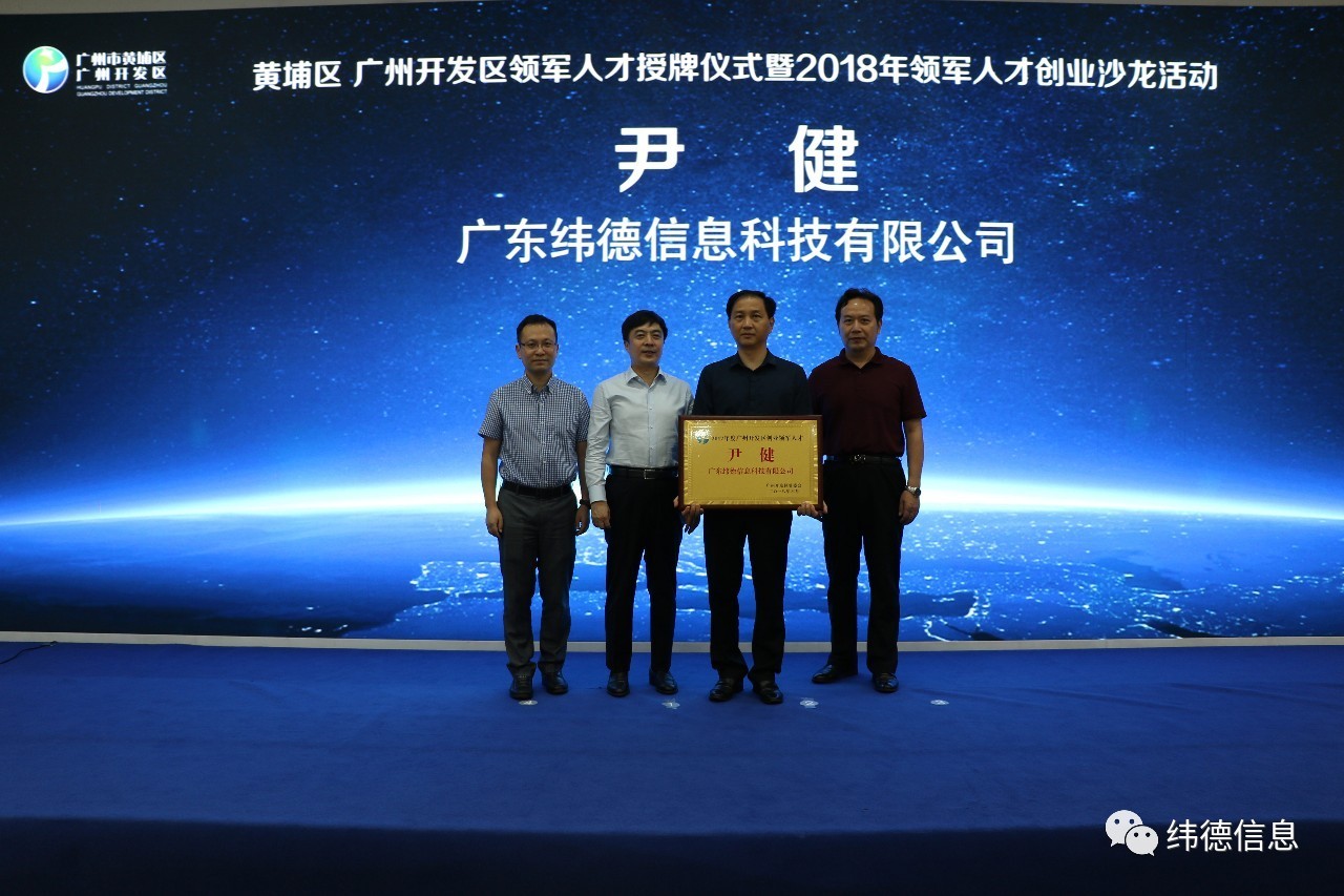 2018年7月17日,廣州開發(fā)區(qū)科技創(chuàng)新局、廣州開發(fā)區(qū)黨工委組織部在廣州蘿崗會(huì)議中心,隆重舉行了開發(fā)區(qū)創(chuàng)新創(chuàng)業(yè)領(lǐng)軍人才的授牌儀式暨2018年創(chuàng)業(yè)沙龍活動(dòng)。廣東緯德信息科技有限公司董事長(zhǎng)尹健先生,憑借領(lǐng)先技術(shù)優(yōu)勢(shì)和產(chǎn)業(yè)化能力,從上千名候選人中脫穎而出,成為廣州開發(fā)區(qū)創(chuàng)業(yè)領(lǐng)軍人才!
